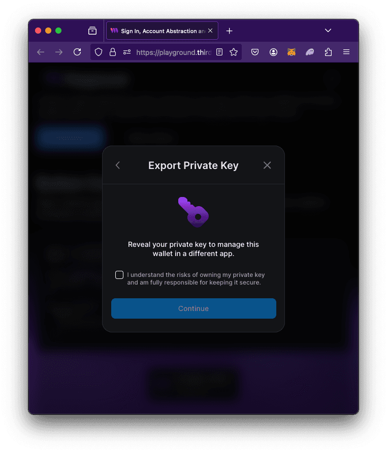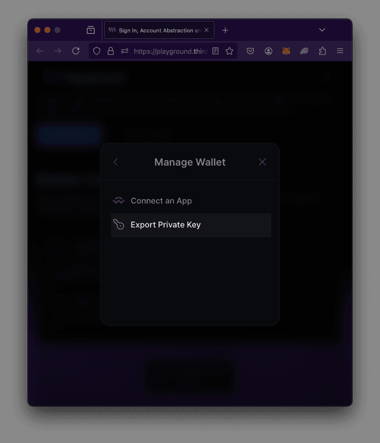 As an advanced option, to hide the export private key option from the modal, set the hidePrivateKeyOption